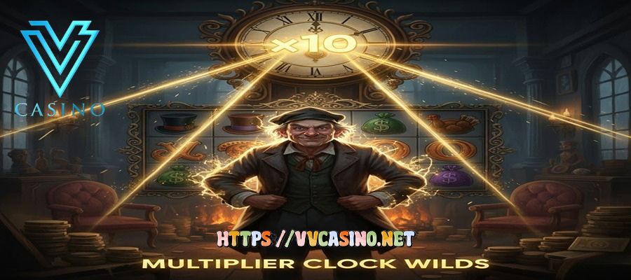 Ebenezer's Clock Multiplier can be triggered randomly on any spin in the base game or during Win Spins, applying a multiplier of x2, x3, x4, x5, or x10 to all wins on that specific spin. This feature is the foundation of all the game's major mechanics.